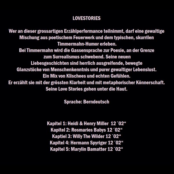 zum Surrealismus schwebend. Timmermahns Liebesgeschichten sind herrlich ausschweifende, bewegte